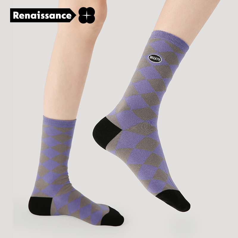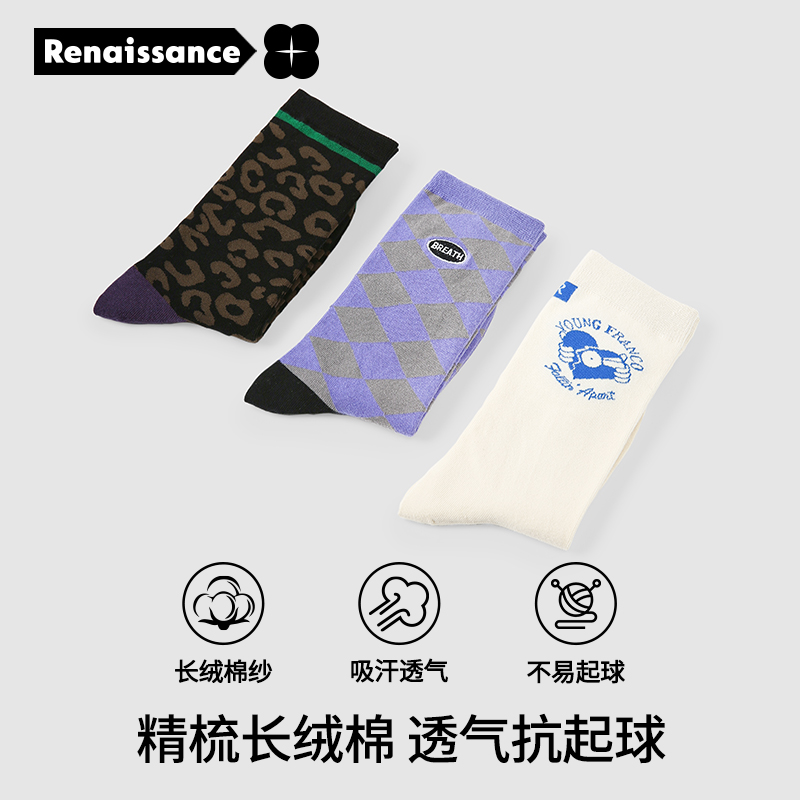 文艺复兴袜子女中筒袜春秋款ins潮菱格豹纹长袜秋季百搭韩版棉袜