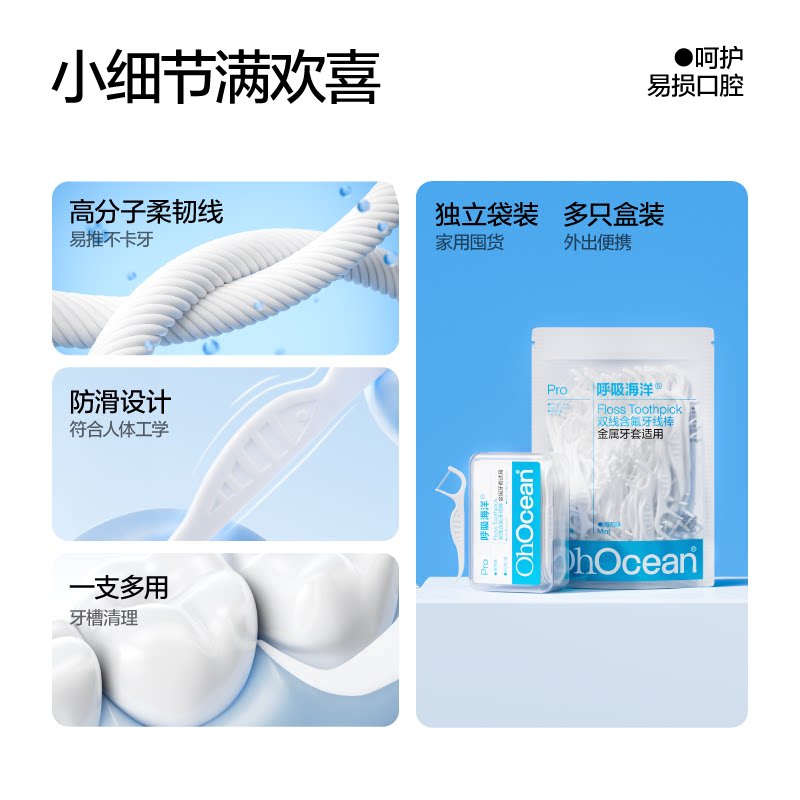 呼吸海洋正畸牙线棒专用含氟双线矫钢剔牙齿套签护理家庭独立袋装
