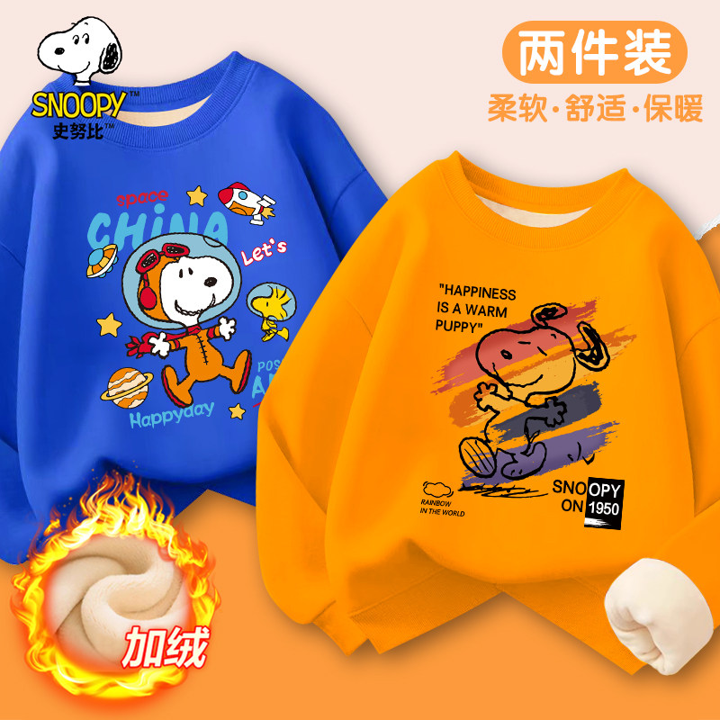 史努比男童加绒卫衣冬款潮牌中大童加厚保暖上衣儿童男孩冬装童装