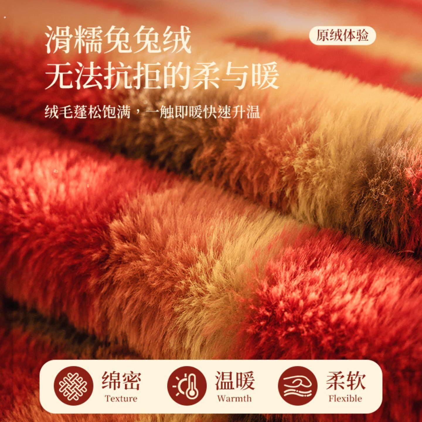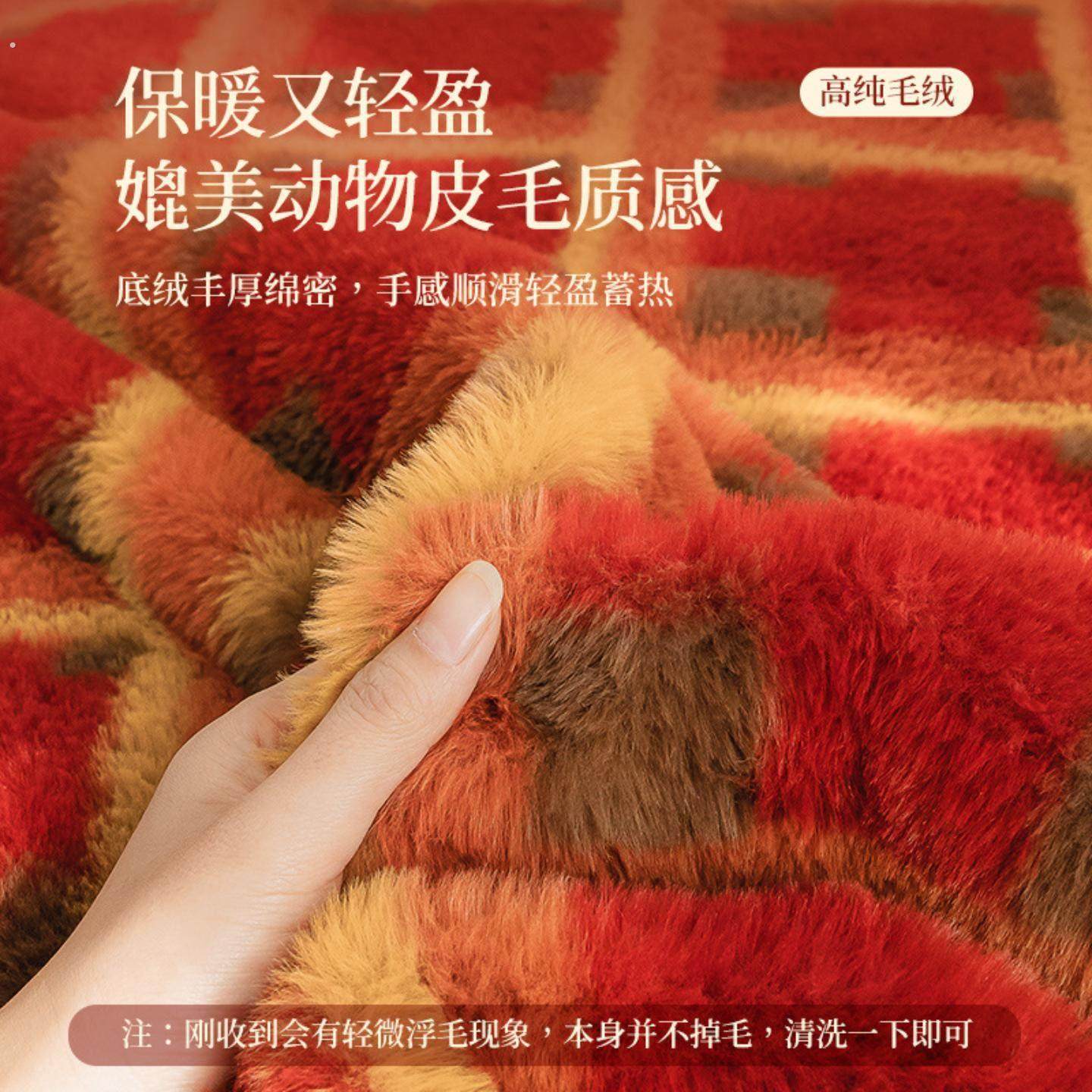 新年沙发垫兔毛绒红色盖巾秋冬一整张全盖防滑套罩冬季新年毯