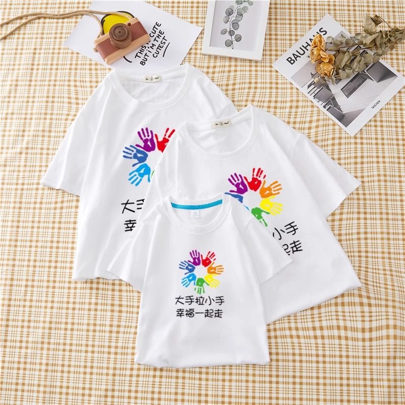 幼儿园亲子装一家三口四口夏装纯棉短袖运动会活动T恤定制班服diy