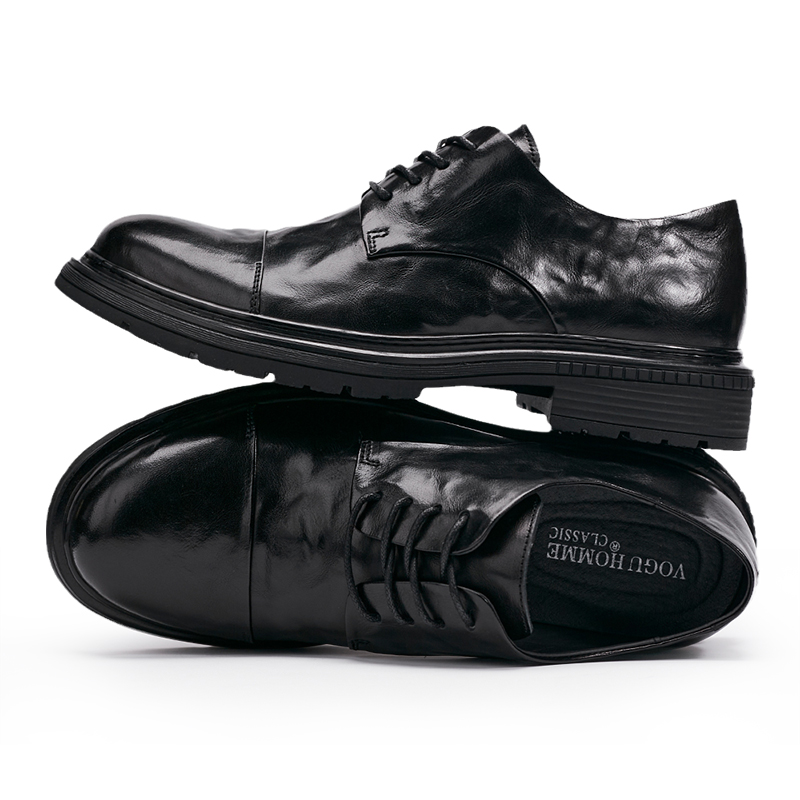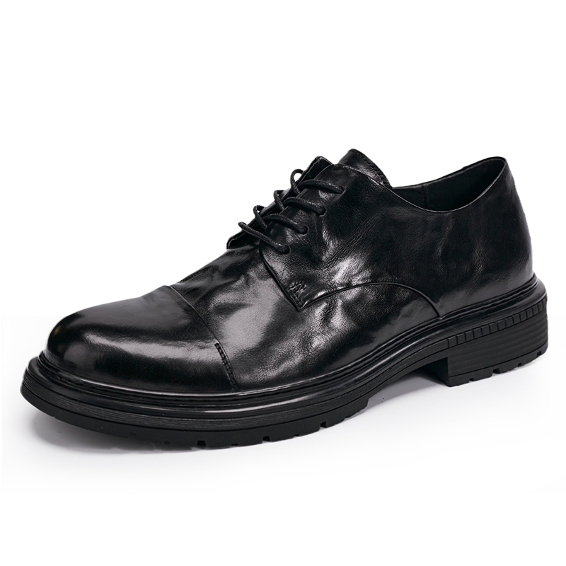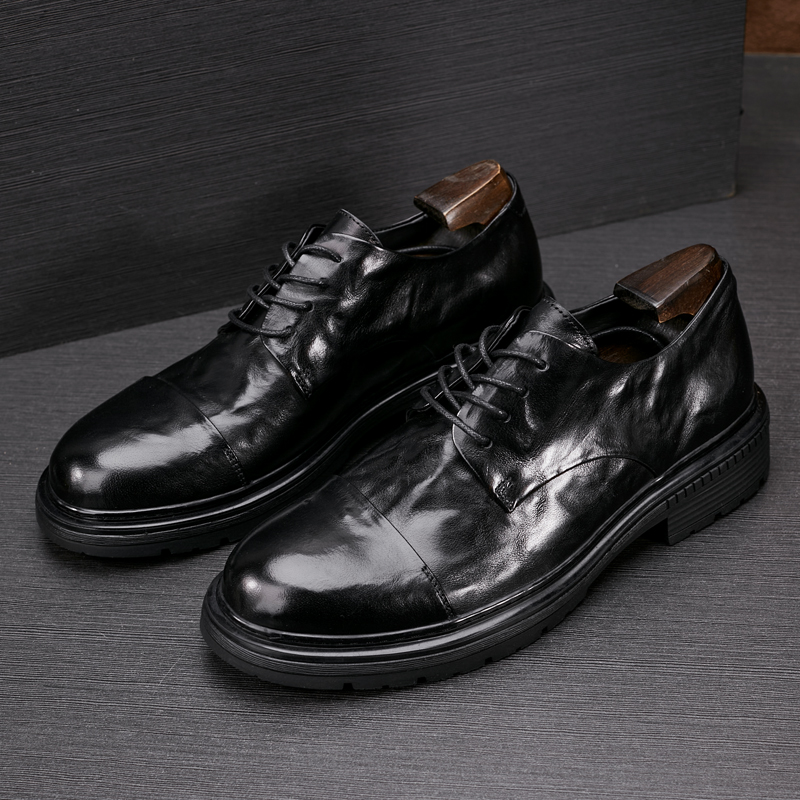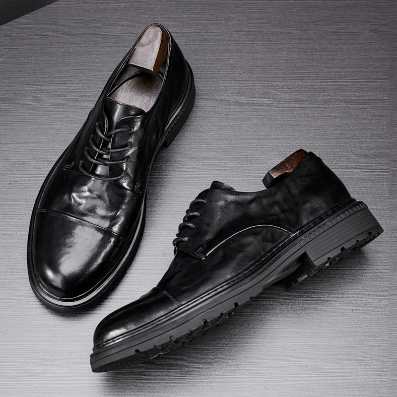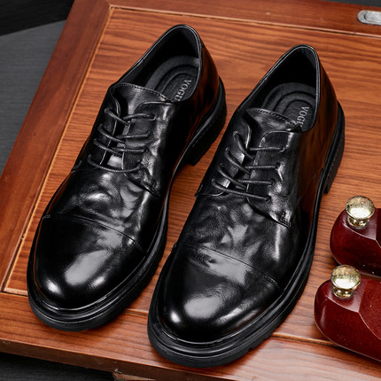 男鞋2025春季时尚透气正装商务鞋厚底青年圆头小皮鞋休闲爸爸鞋子