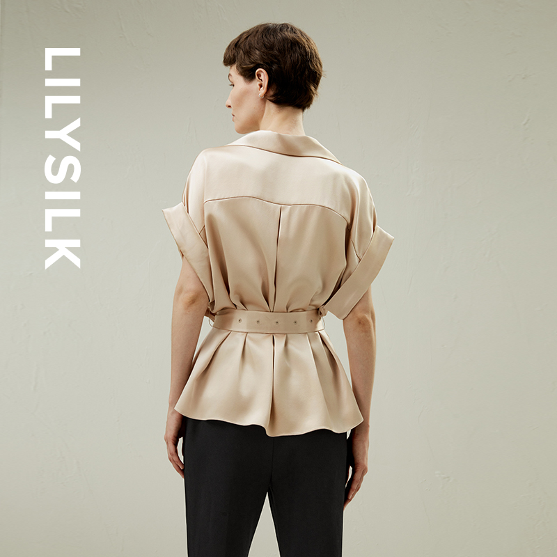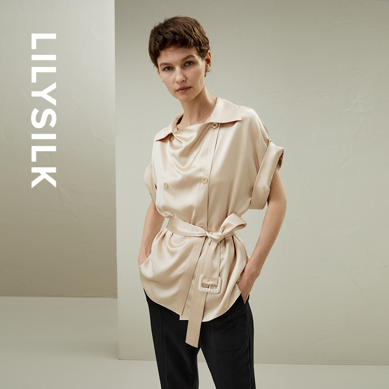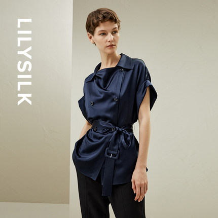 LILYSILK莉莉秀客双排荡领无袖马甲外套设计款重磅真丝衬衫上衣女