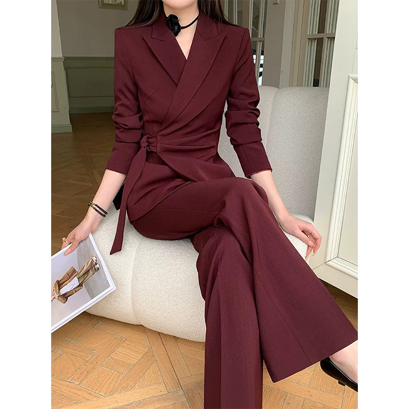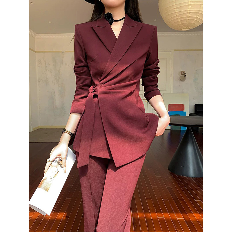秋季新款大码安可拉红西装套装女装高级感职业修身西服长裤两件套