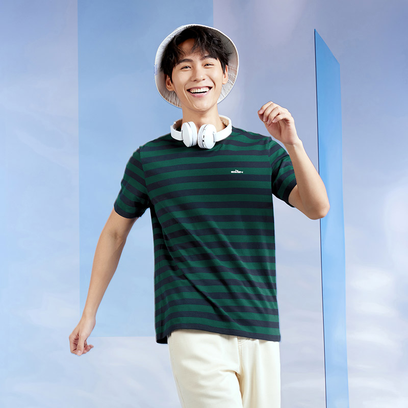柒牌条纹短袖T恤圆领舒适