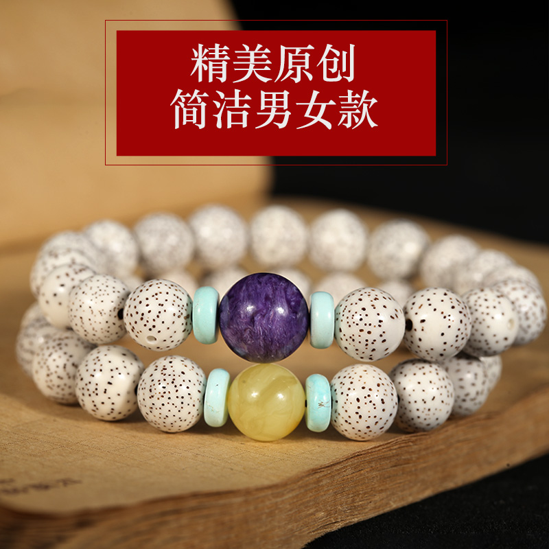 原创高瓷藏品圆珠星月菩提子手串男女顺白正月单圈手链情侣手饰品