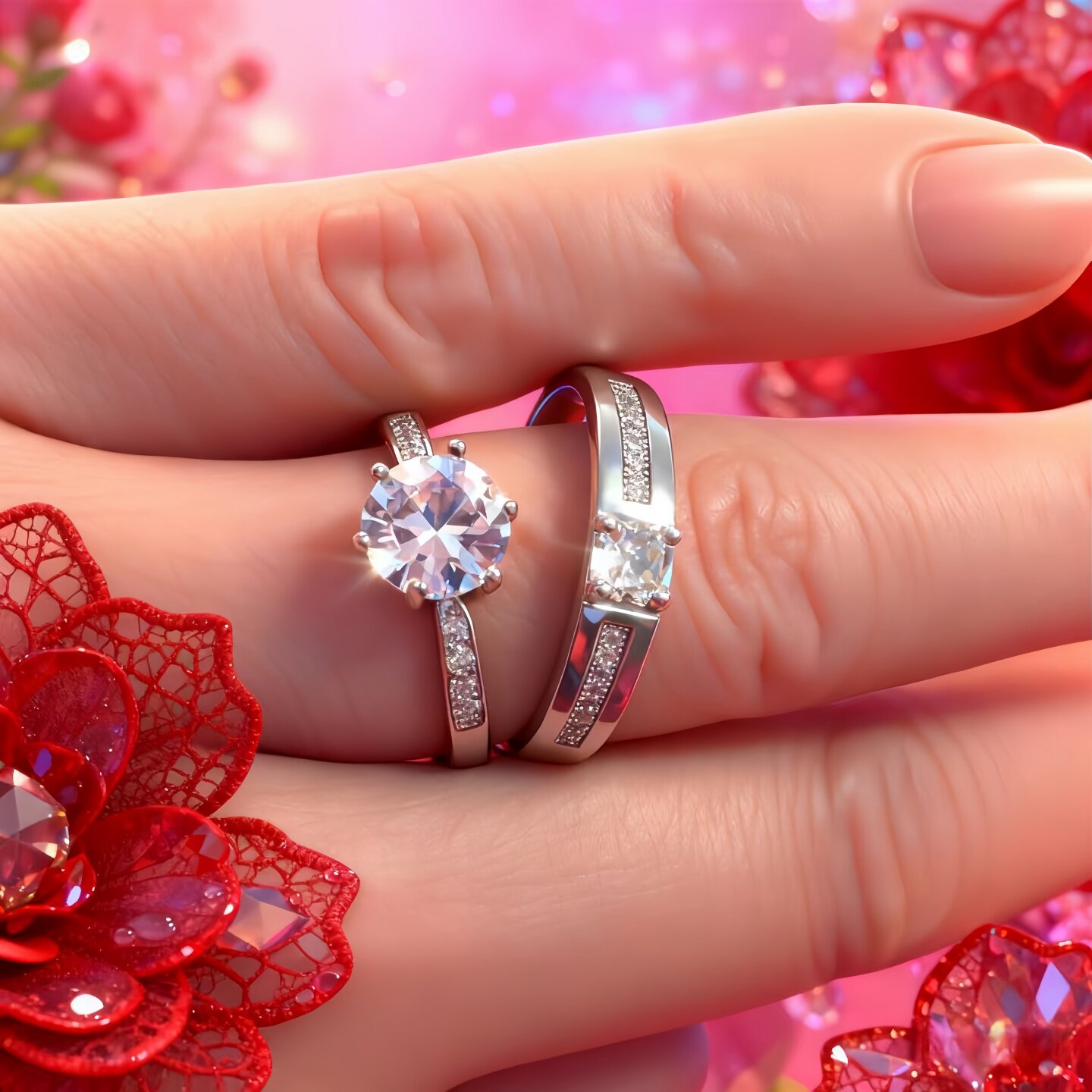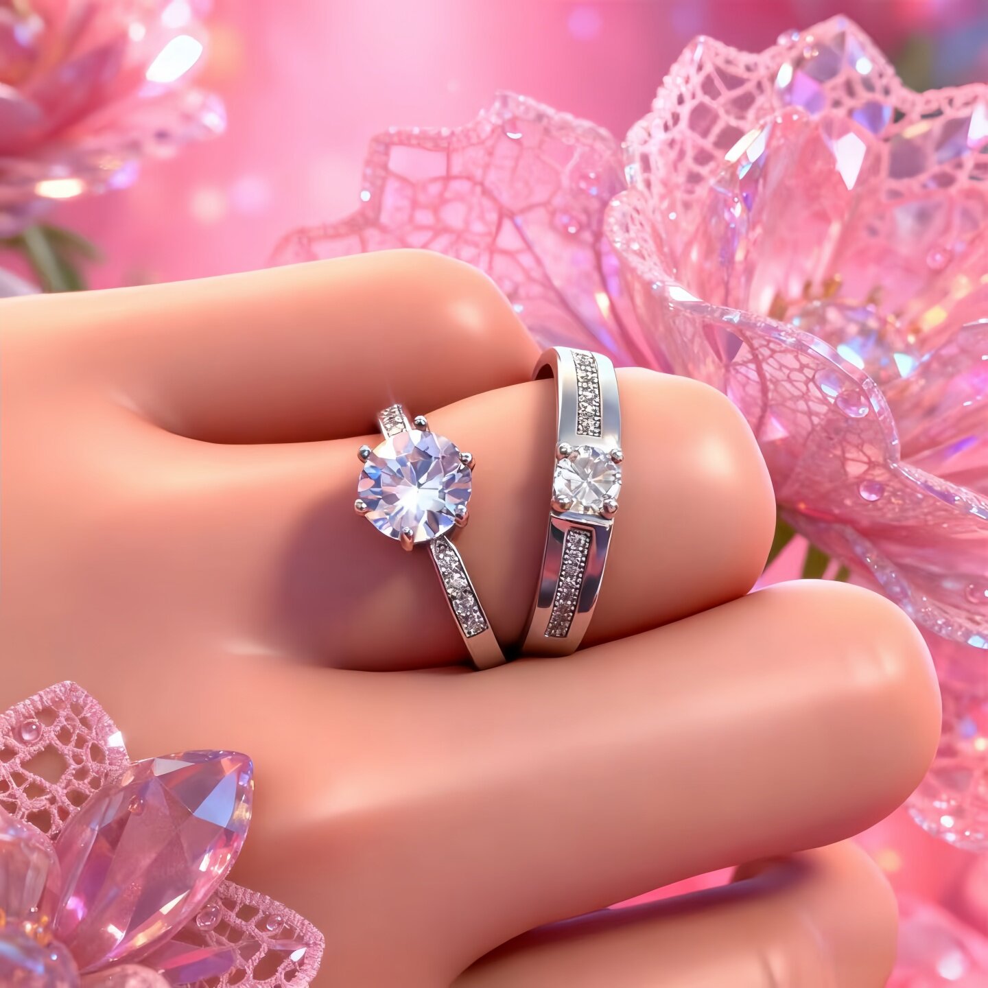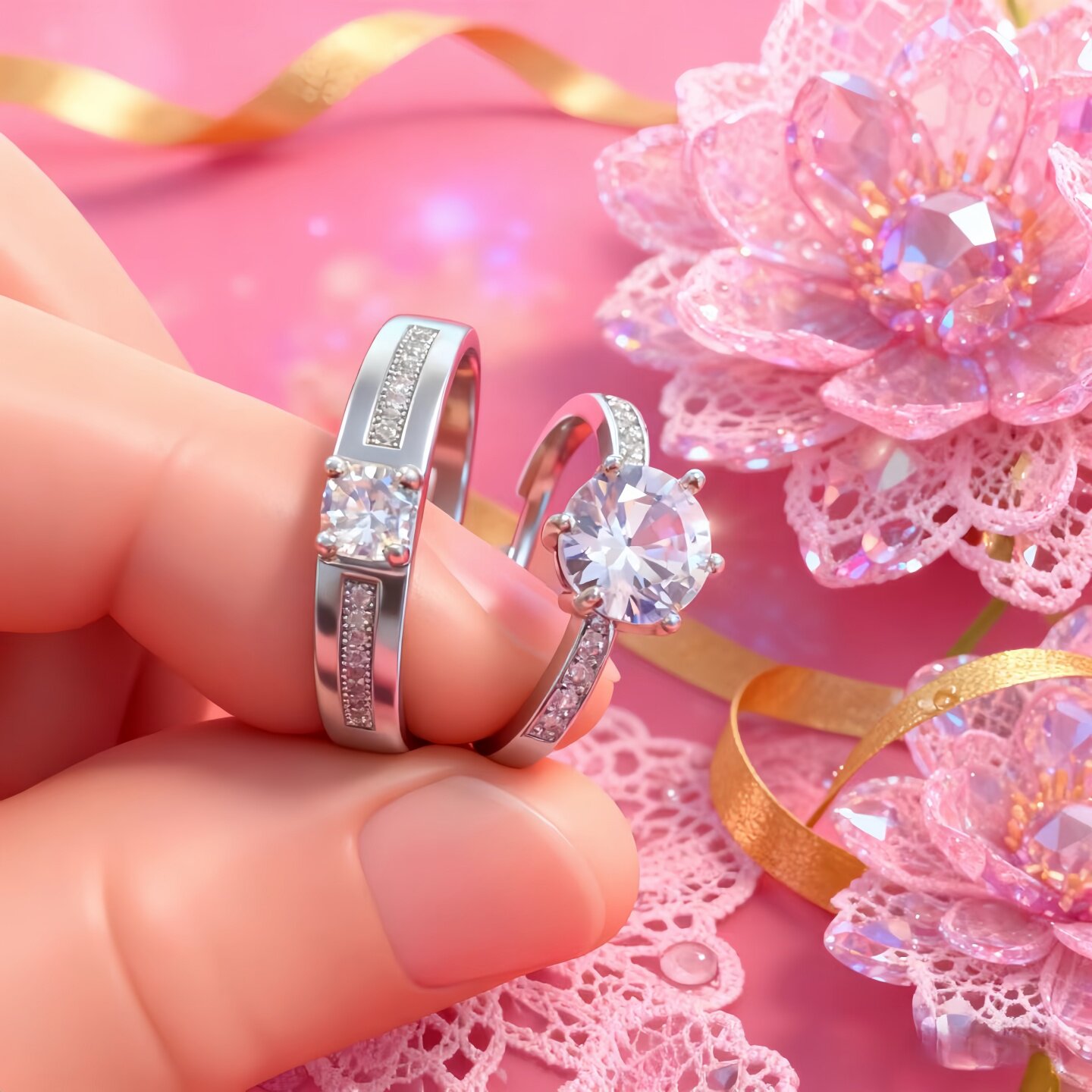 高级感仿真钻戒一对可调节求婚