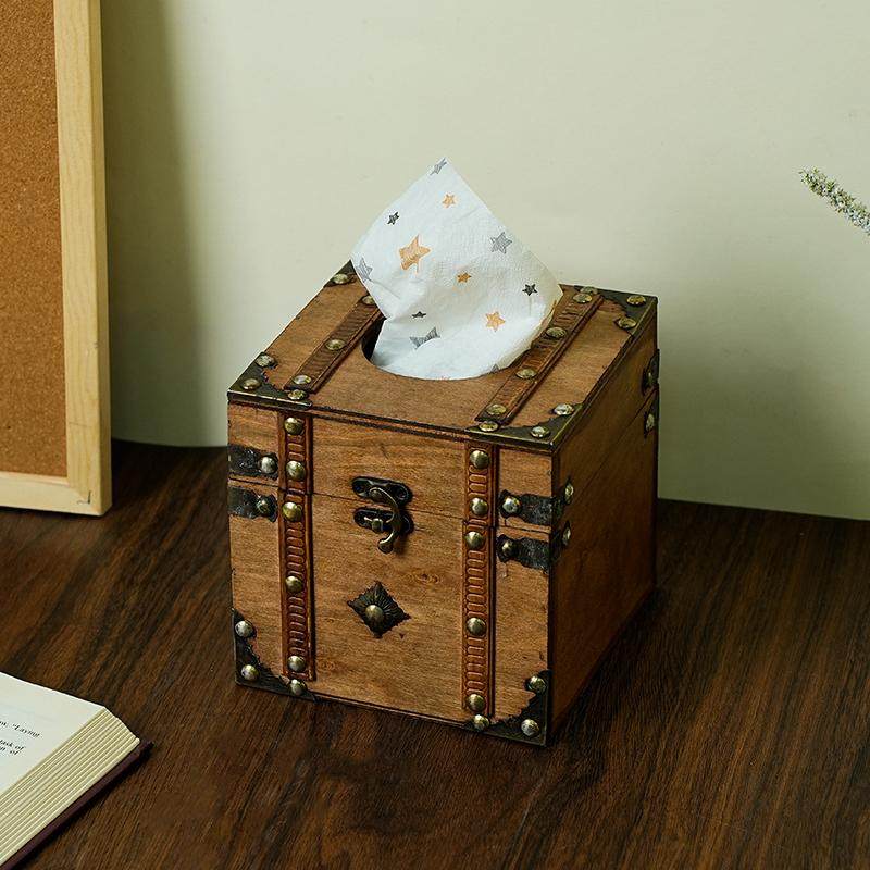 高档复古木质纸巾盒家用客厅纸抽盒子餐厅酒店中式抽纸盒拍摄道具