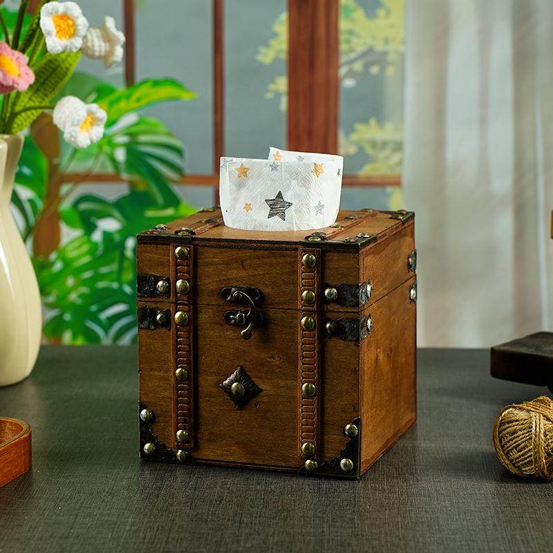 高档复古木质纸巾盒拍摄道具