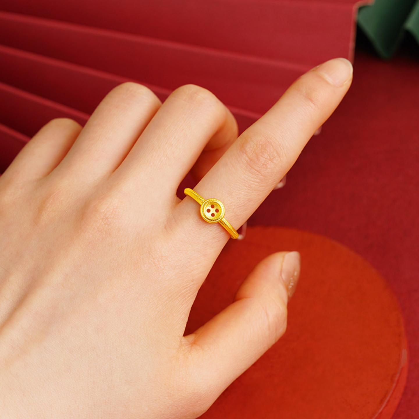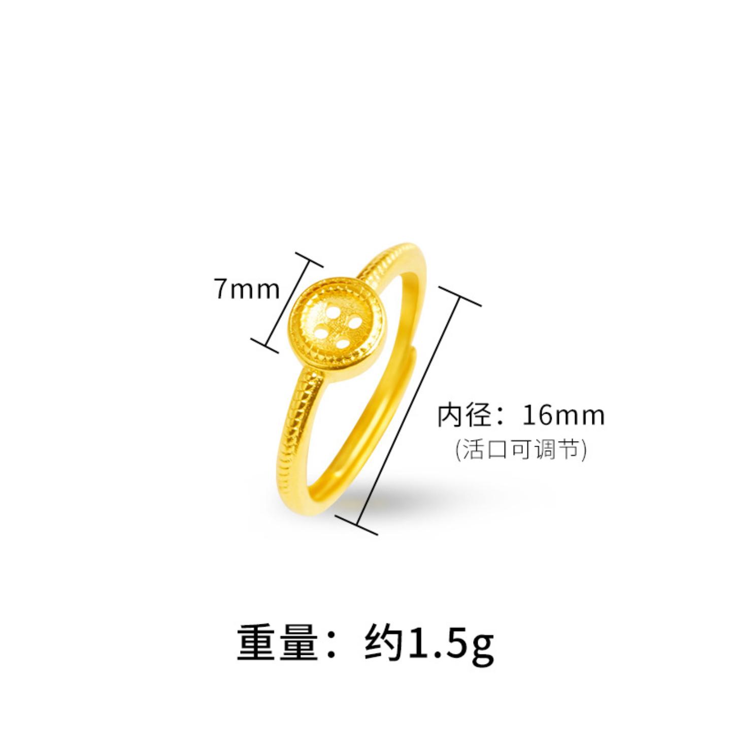 ins小众轻奢简约戒指女款手饰纽扣仿金块铜合金活口调节供应
