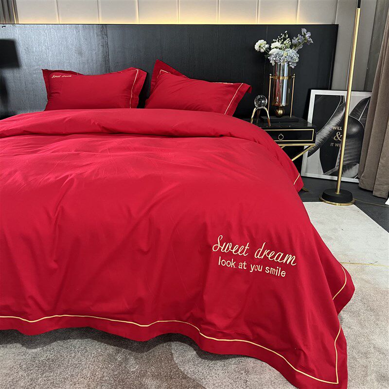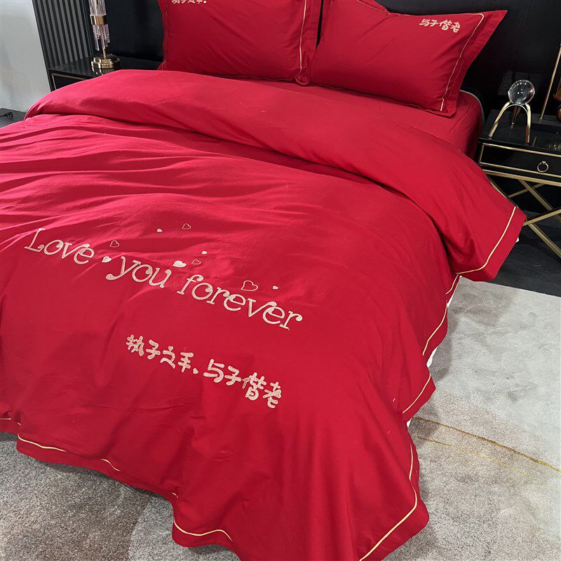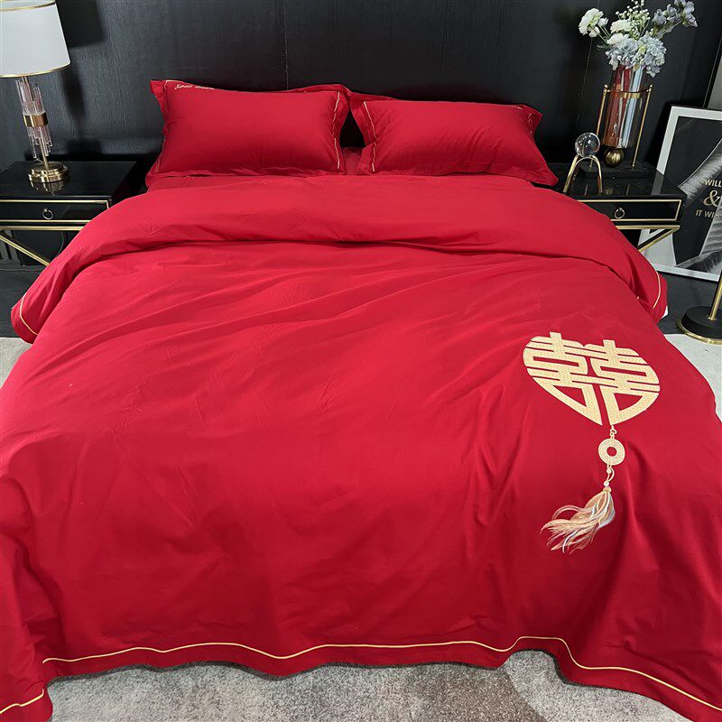 大红色高档婚庆四件组全水洗棉纯棉被套床单婚房结婚喜庆床上用品
