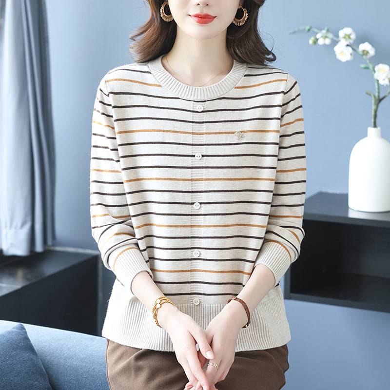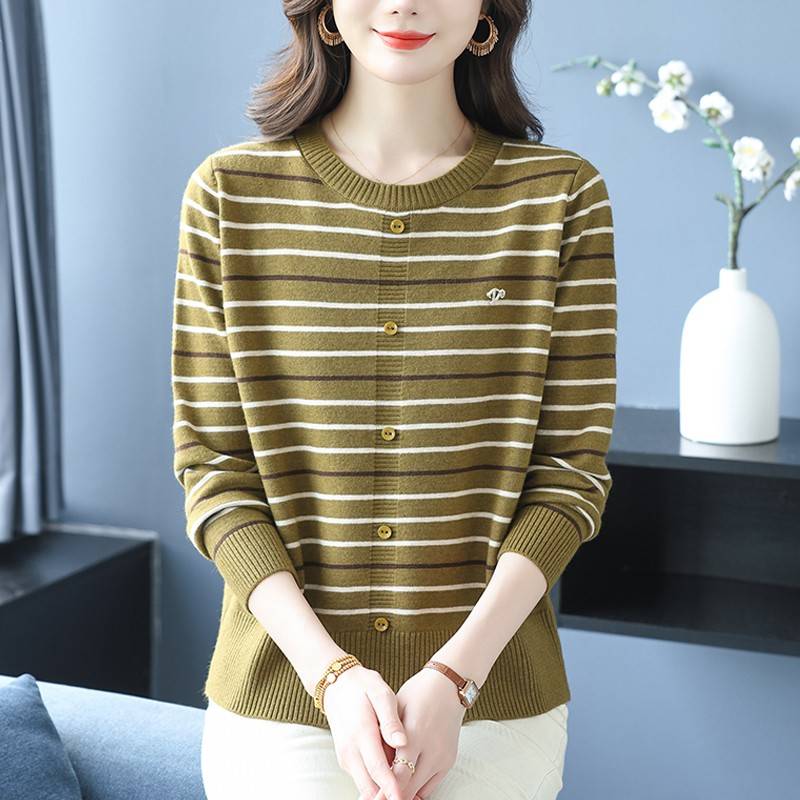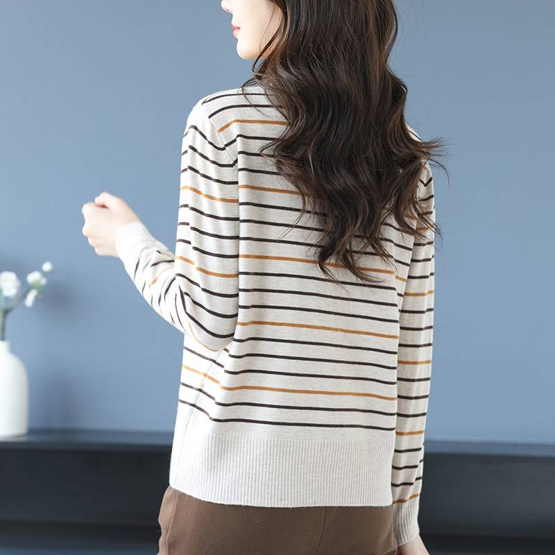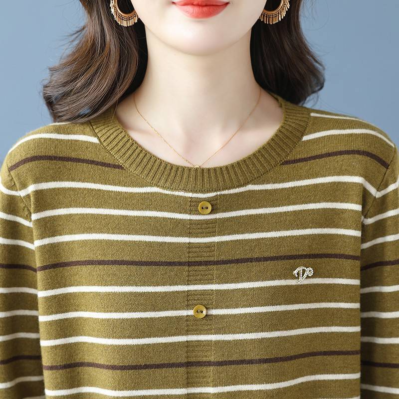 洋气大码女装秋装条纹羊毛衫女士毛衣宽松显瘦针织打底衫上衣内搭