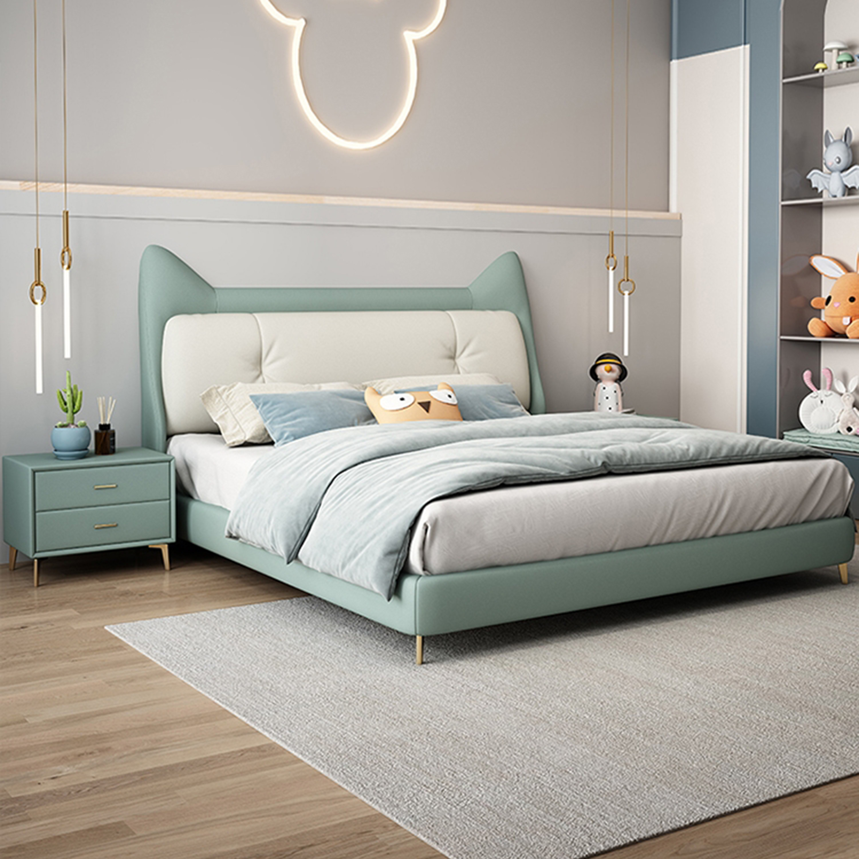 小户型儿童皮床现代简约小卧室