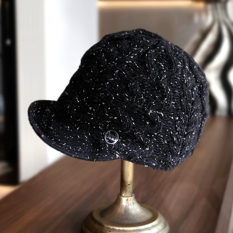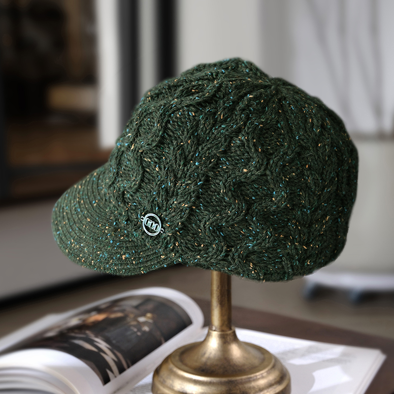 小野商原创粗针毛线帽羊毛点子纱马术帽加高廓形鸭舌帽冬季帽子女
