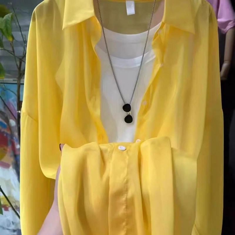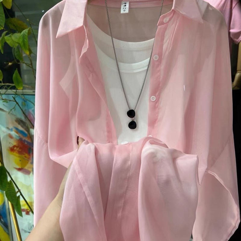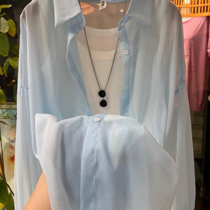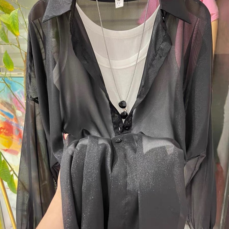 2025新款珠光纱防晒衣开衫雪纺夏搭裙子薄透纱外穿宽松外套衬衣女