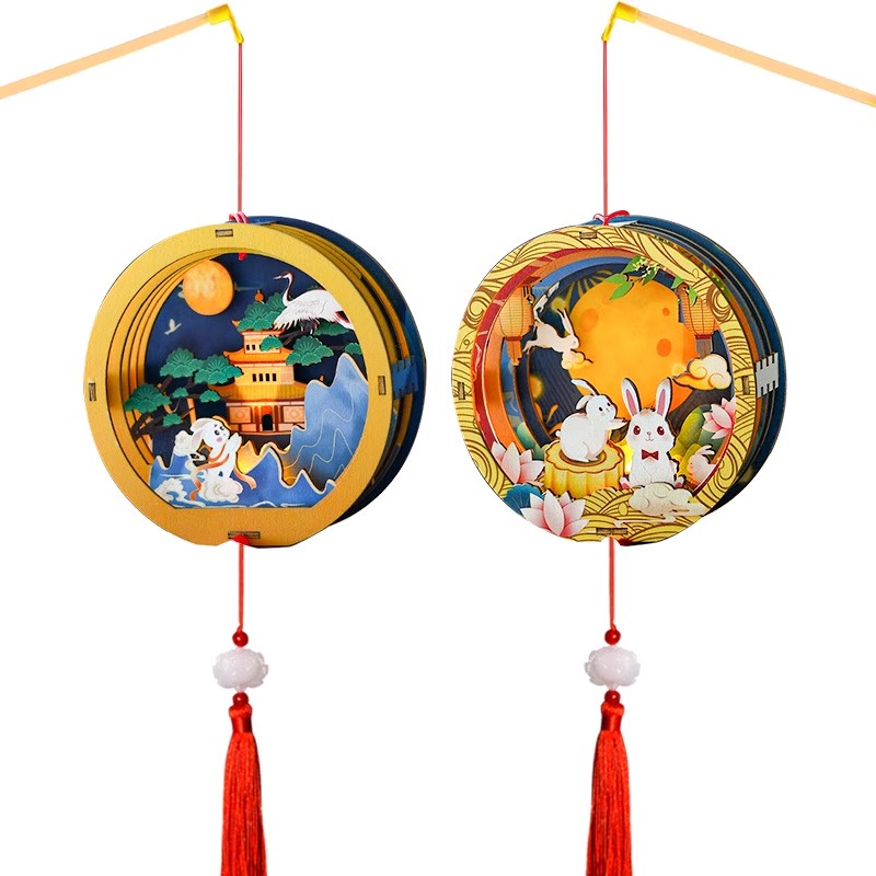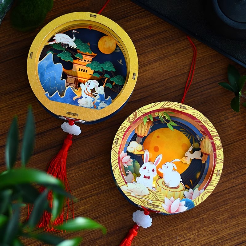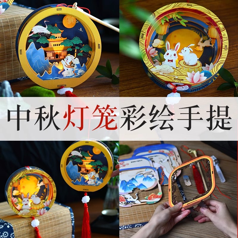 2025中秋灯笼手工diy发光彩绘宫灯摆件木质儿童手提花灯材料包
