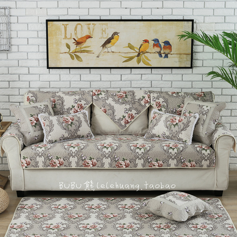 全棉绗缝沙发垫布艺实木坐垫子防滑四季通用田园简约组合纯棉新品
