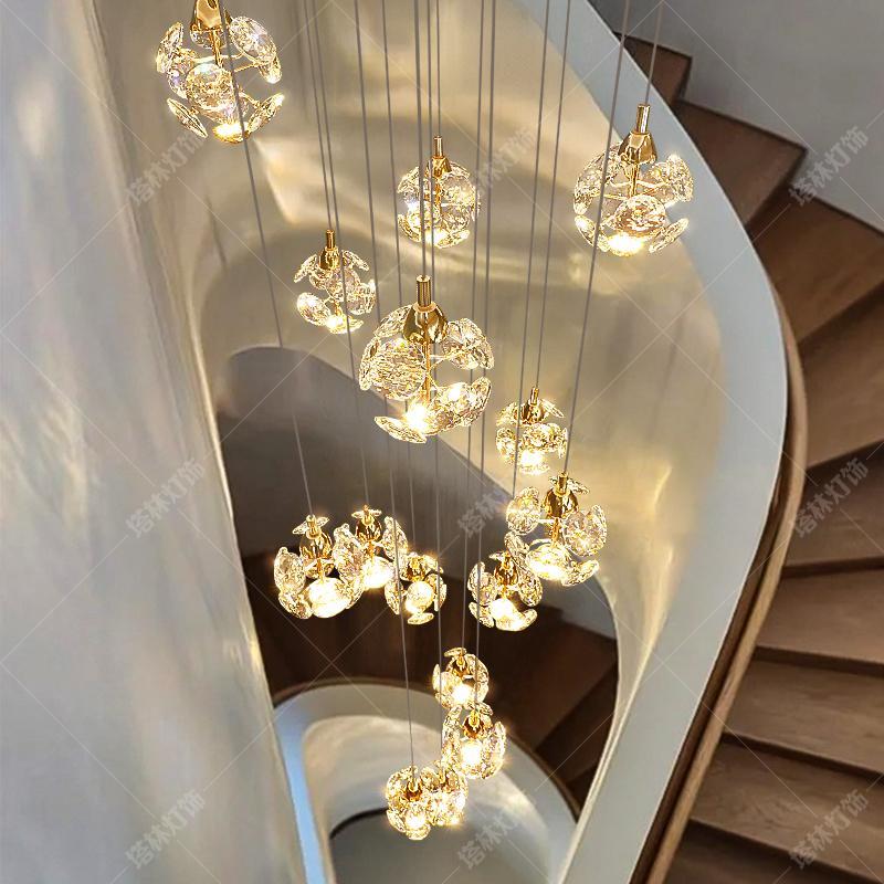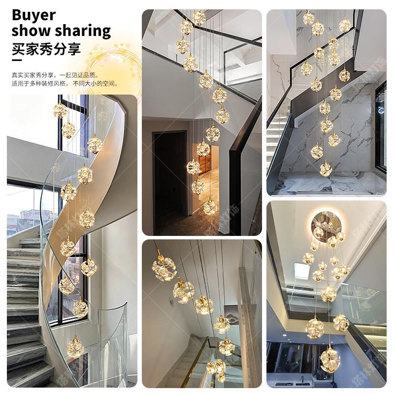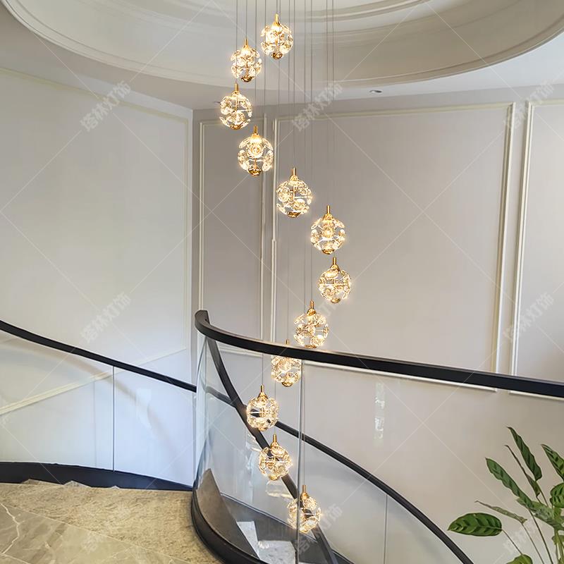 别墅复式楼旋转楼梯间长吊灯现代挑空loft公寓轻奢挑高水晶客厅灯