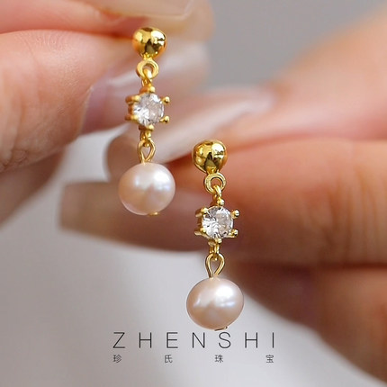 珍氏珠宝天然淡水珍珠耳坠女款 S925银气质灵动新中式耳钉耳饰
