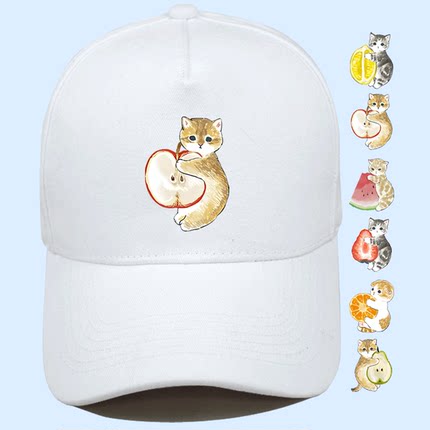 日系猫咪吃水果橘子西瓜橘猫周边男女夏季清爽鸭舌帽遮阳帽棒球帽