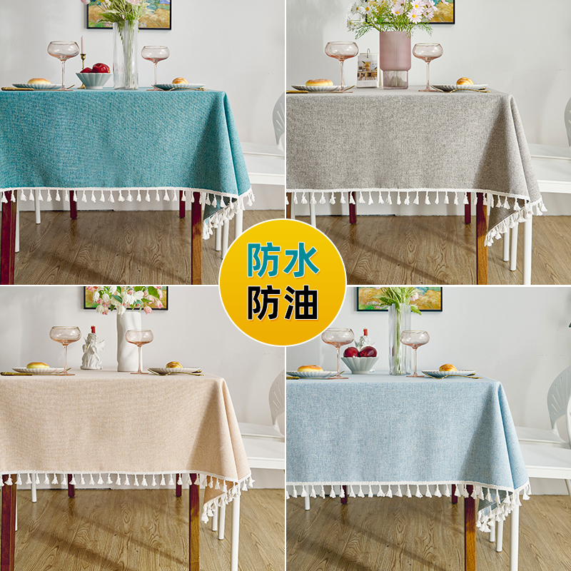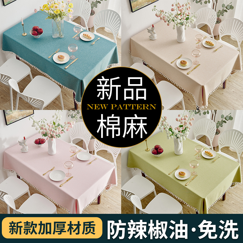 古典棉麻桌布防水防油防烫餐桌布长方形免洗高级感餐桌垫茶几台布