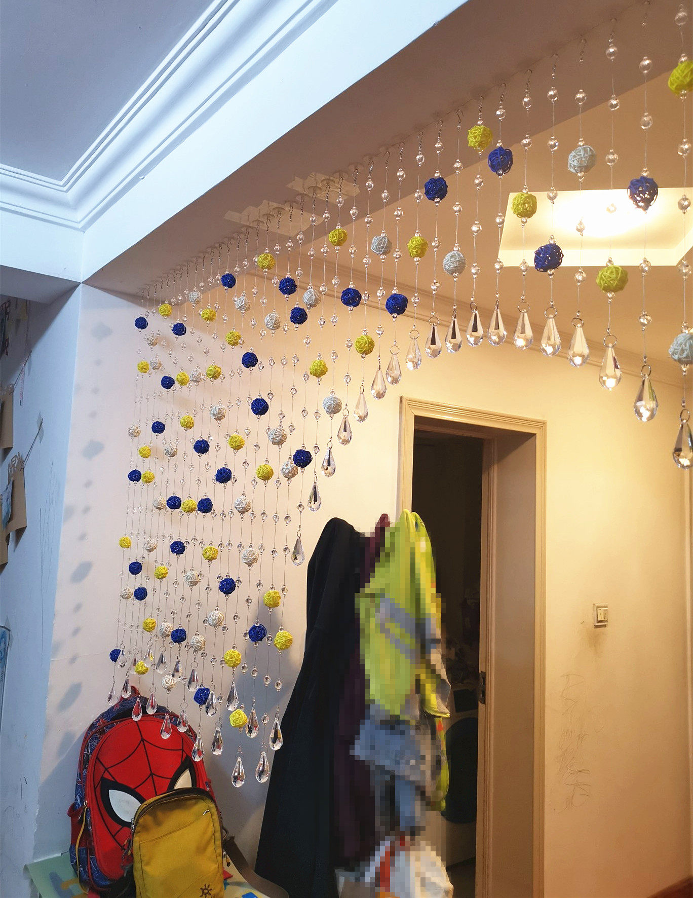 藤球水晶珠帘隔断帘客厅玄关卧室门帘风水帘田园地中海风格免打孔