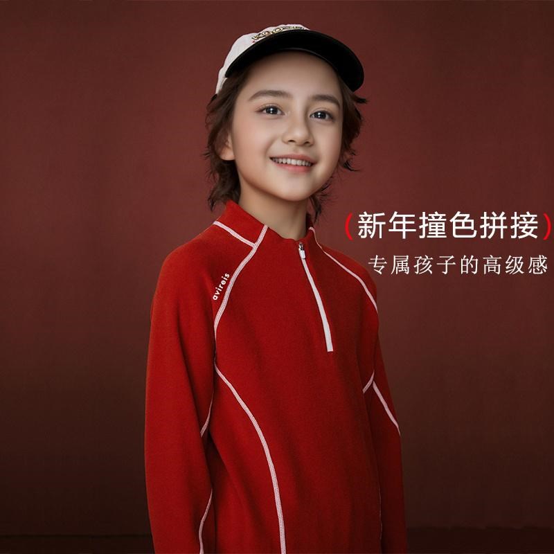 糯糯衣运动款儿童本命年打底w衫男女童红色长袖T恤速干训练卫衣