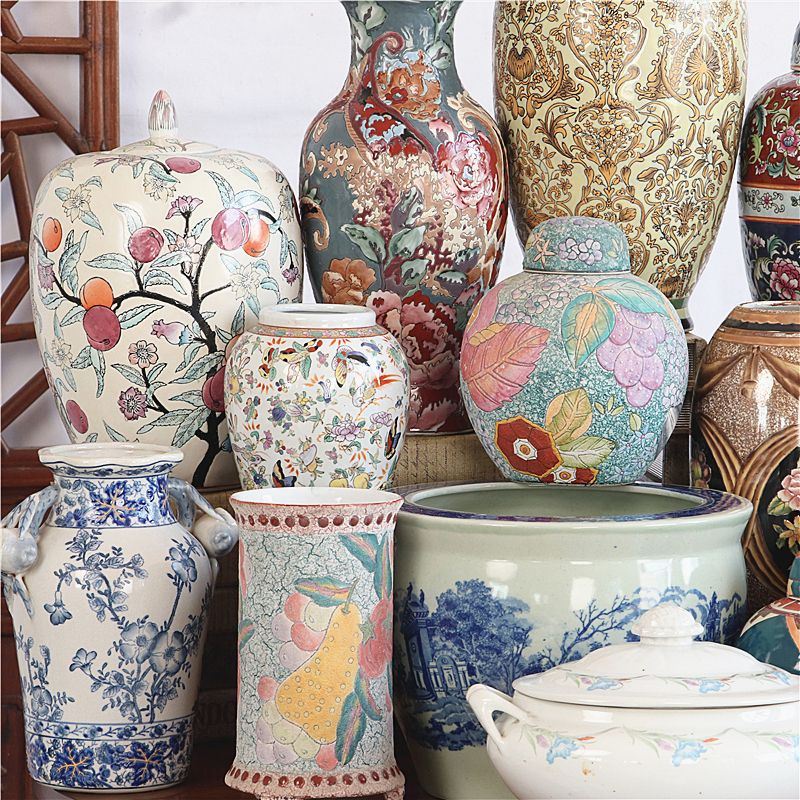 欧式复古陶瓷粉彩手绘花瓶民宿酒店样板间桌面摆件玄关博古架装饰