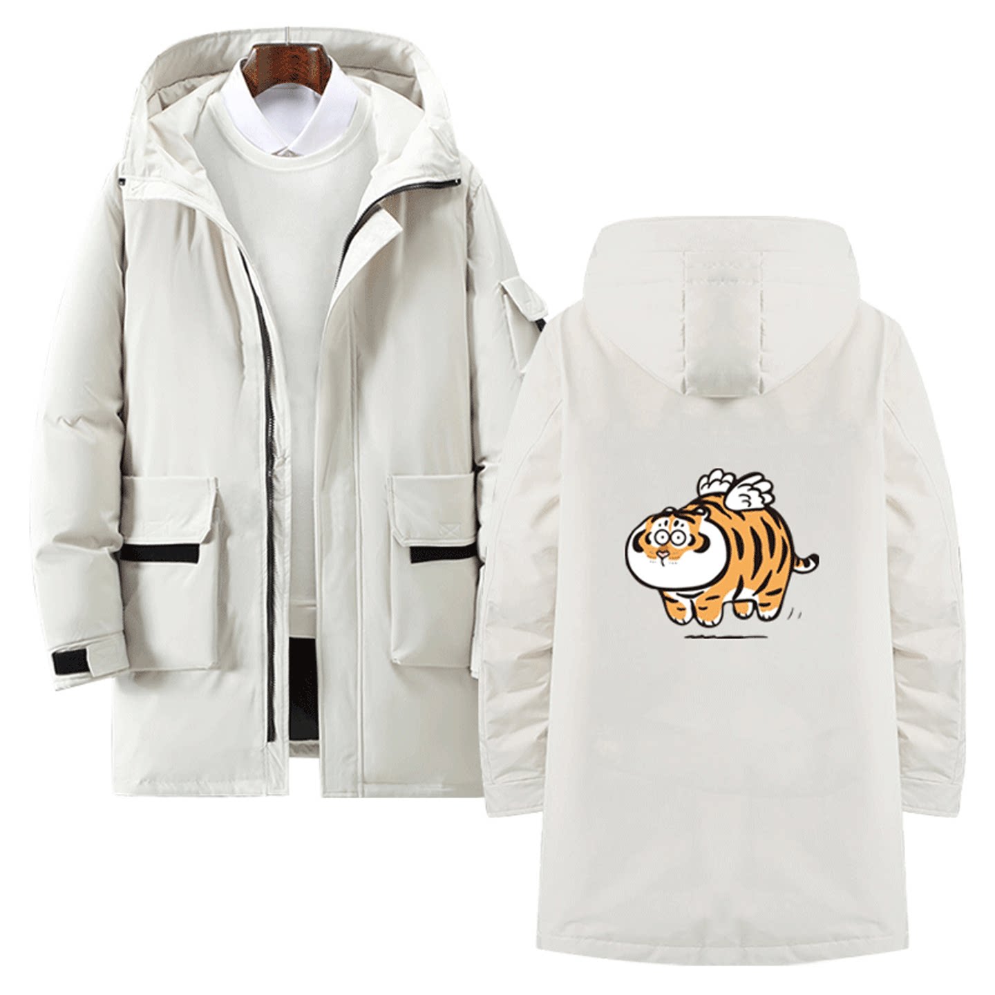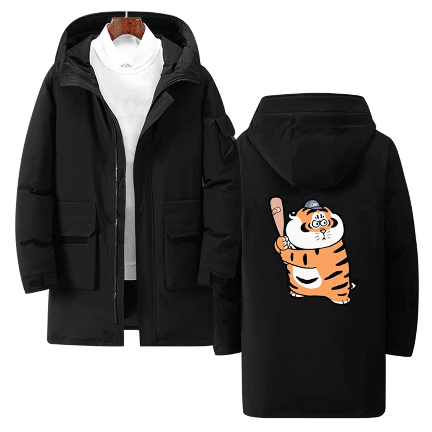 我不是胖虎可爱周边秋冬情侣可定制中长款羽绒服卡通可爱老虎男女