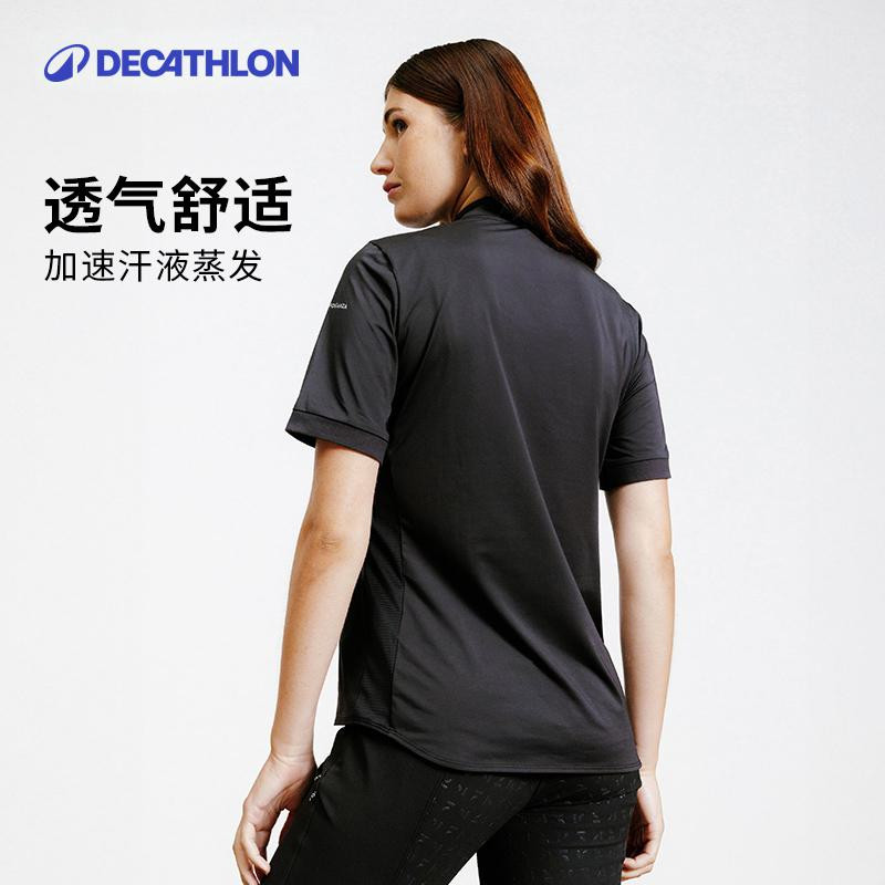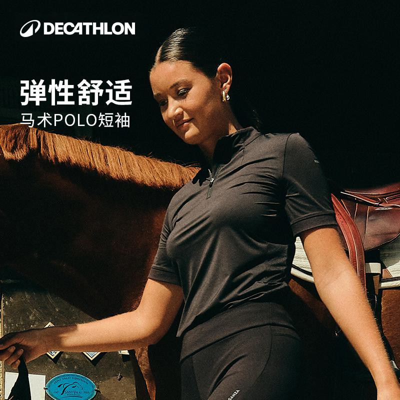 迪卡侬女士Polo衫透气马术运动骑士短袖高尔夫修身快干竟赛服OVHR