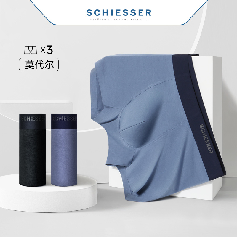 3条装Schiesser舒雅内裤男士夏季薄款柔软莫代尔简约中腰平角裤头