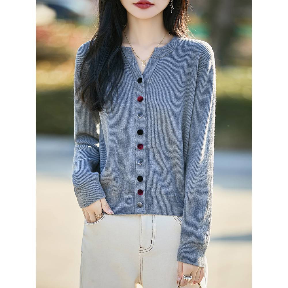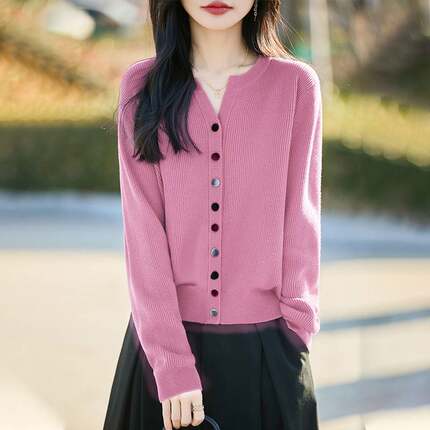女士红色开衫针织衫短款上衣秋装2025年新款时尚洋气早秋毛衣外套
