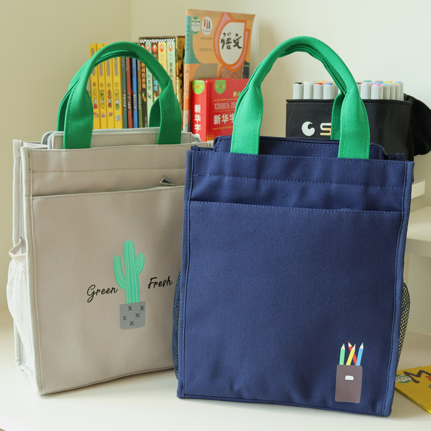 卡通帆布艺手提袋A4书袋中小学生拎书袋复习补课包资料办公文件袋