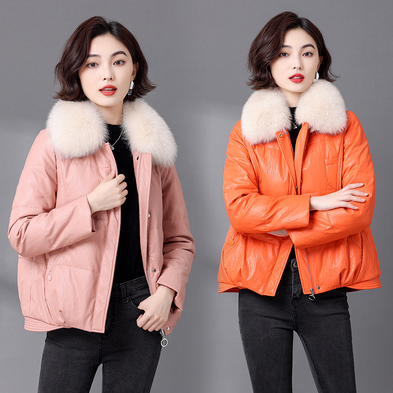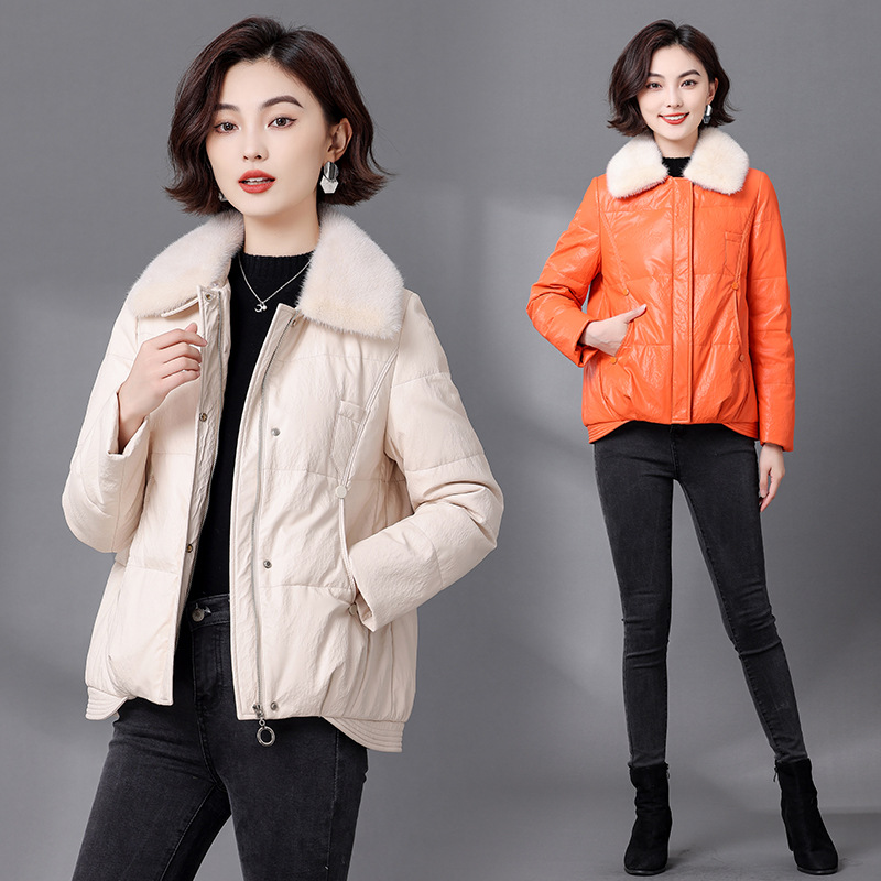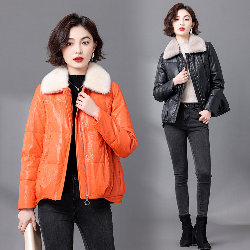 冬加厚羽绒服女士短款真皮皮衣外套大码小个子绵羊皮毛领皮草夹克