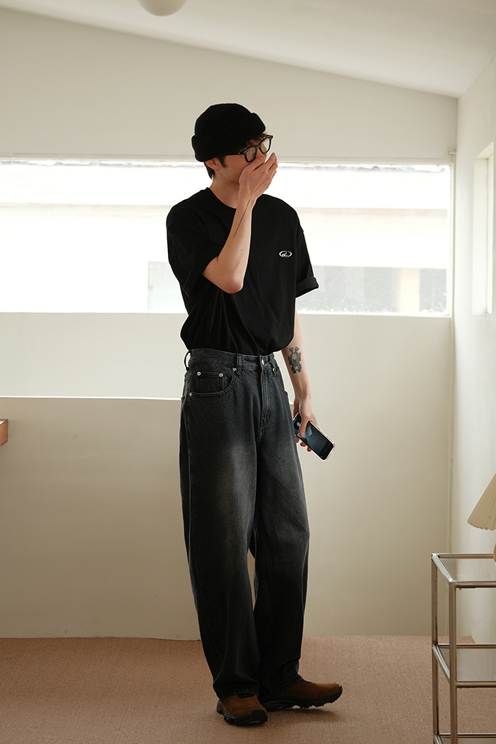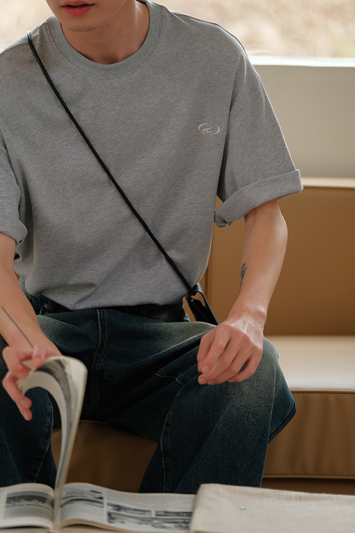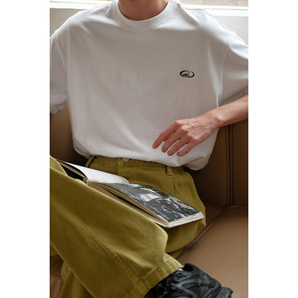 可乐生活自制 春夏未来感刺绣300g圆领纯棉宽松基础日系短袖T恤男