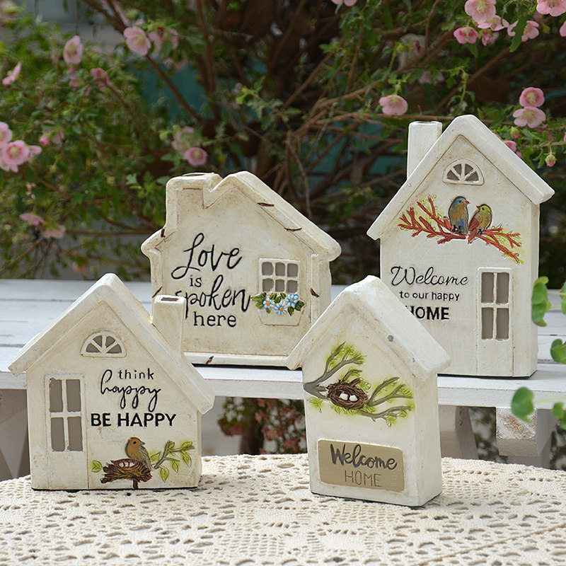 木厝 美式复古白色小房子花园庭院微景观店铺橱窗装饰品小摆件