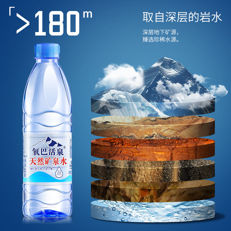 氧巴活泉天然矿泉水整箱批特价550ml*24大桶饮用山泉水小瓶装泡茶