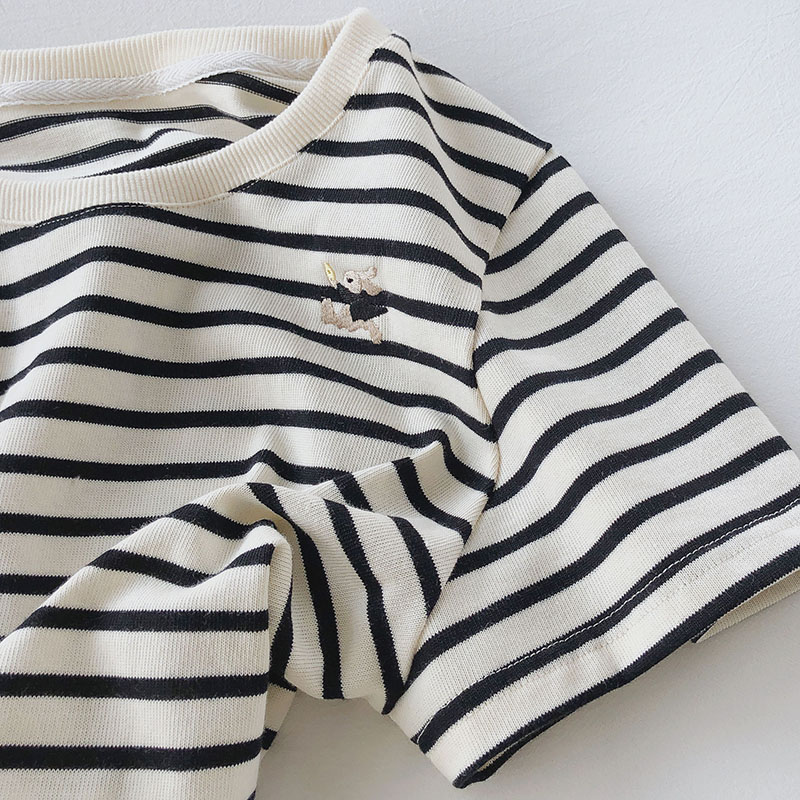 敲减龄显白!温柔米条纹圆领短袖T恤女夏季纯棉宽松休闲学生上衣