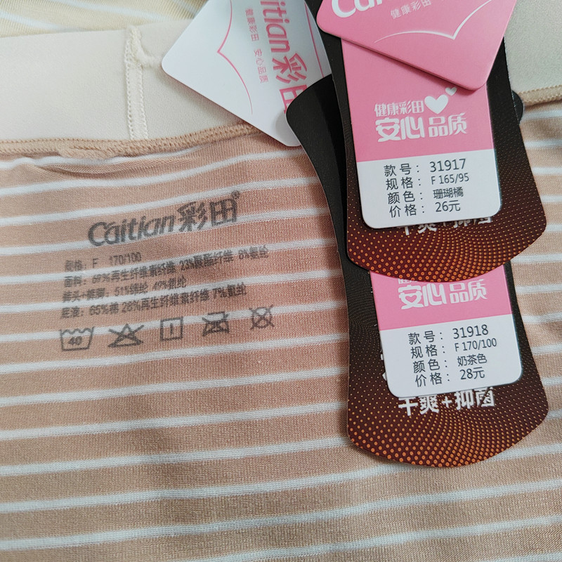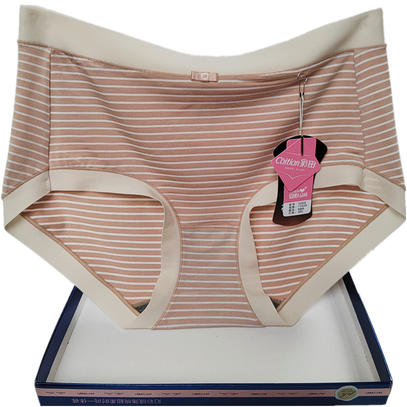彩田内裤女条纹青年莫代尔日系石墨烯抑菌包臀中腰31917高腰31918