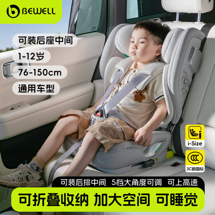 Bewell汽车用便携式儿童安全座椅1岁以上-12岁简易车载大童宝宝椅