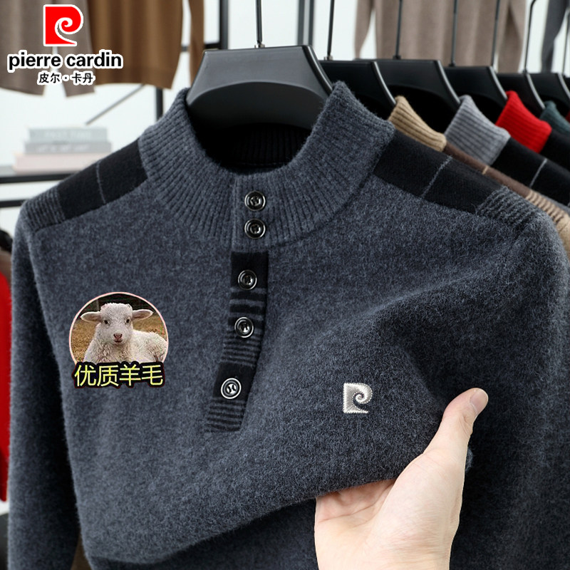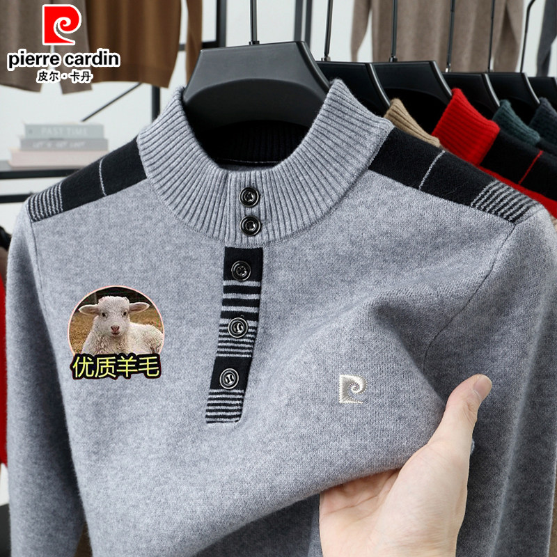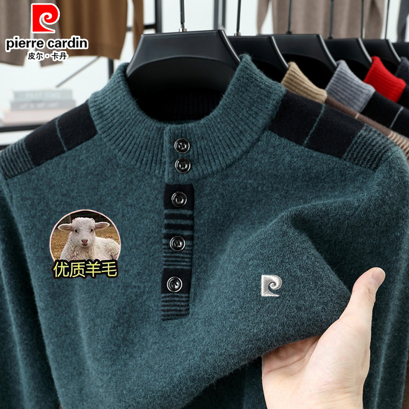 皮尔卡丹100%纯羊毛衫男士半高领加厚毛衣中年宽松休闲针织爸爸装