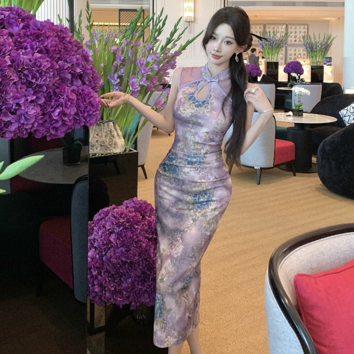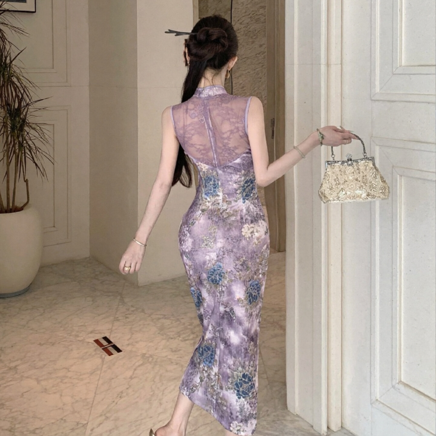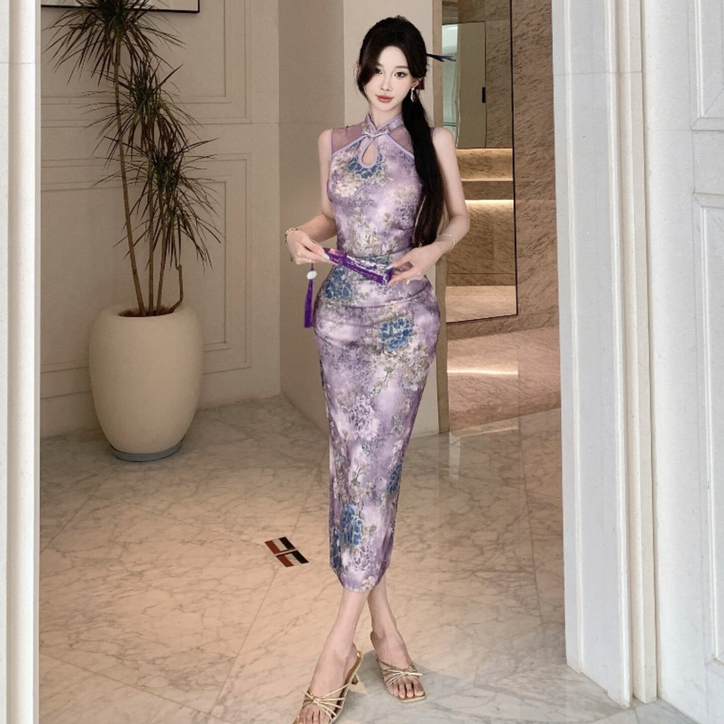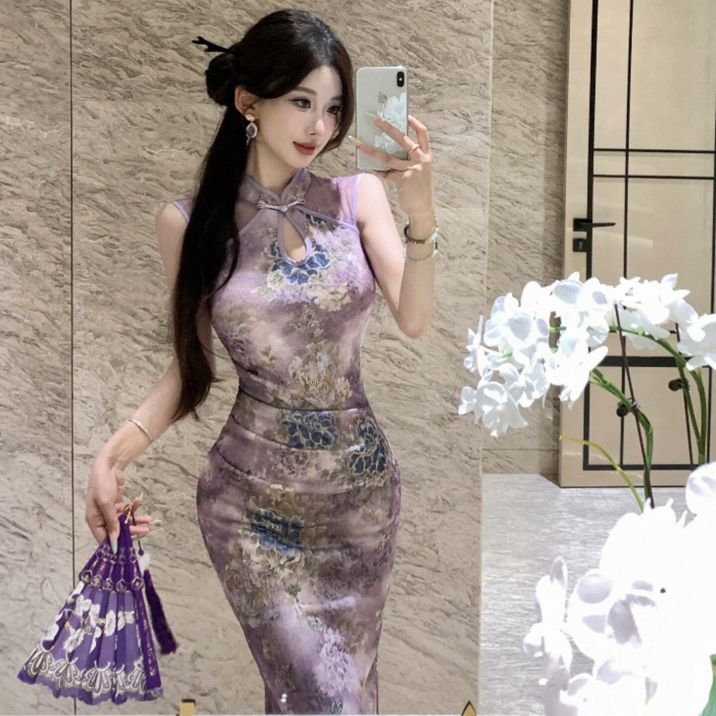 新中式连衣裙国风改良旗袍中长款女人味连衣裙夜场足浴技师工作服