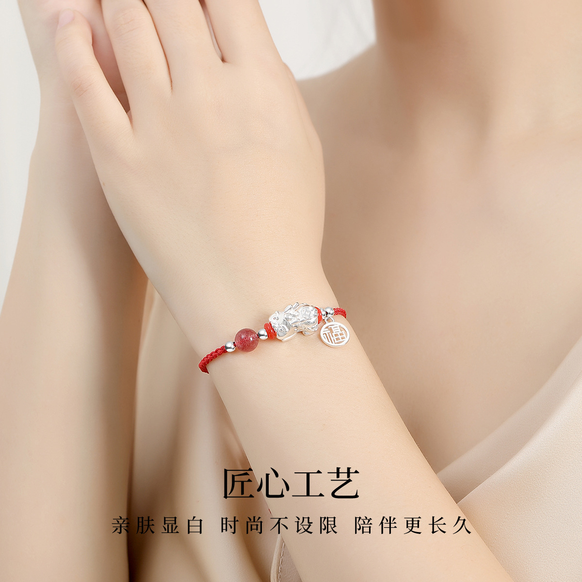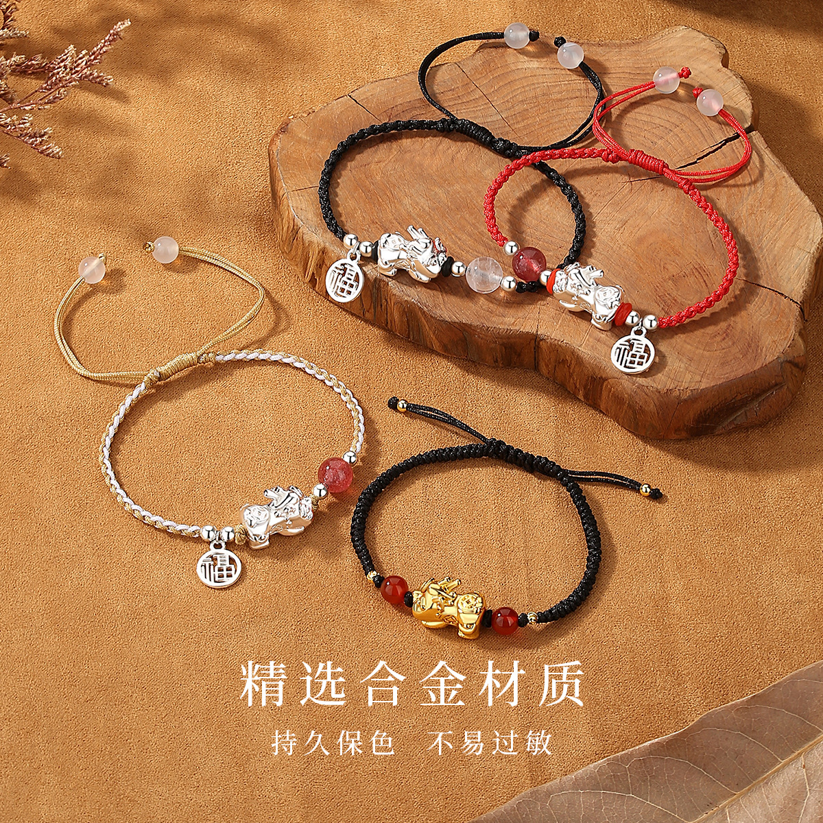摩天轮招财送福貔貅手绳女百搭合金不掉色高级感情侣红绳手链饰品
