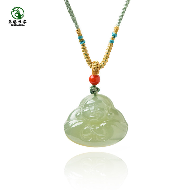 和田玉吊坠女男东海水晶翡翠玉石冰晴水开心佛项坠佛公玉坠玉项链
