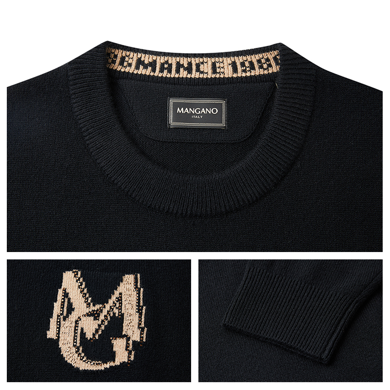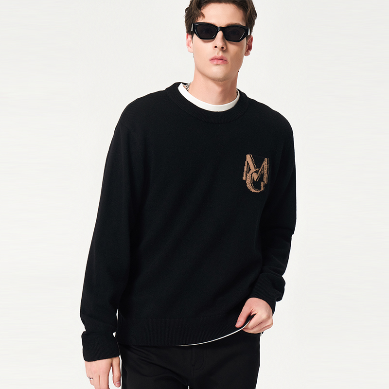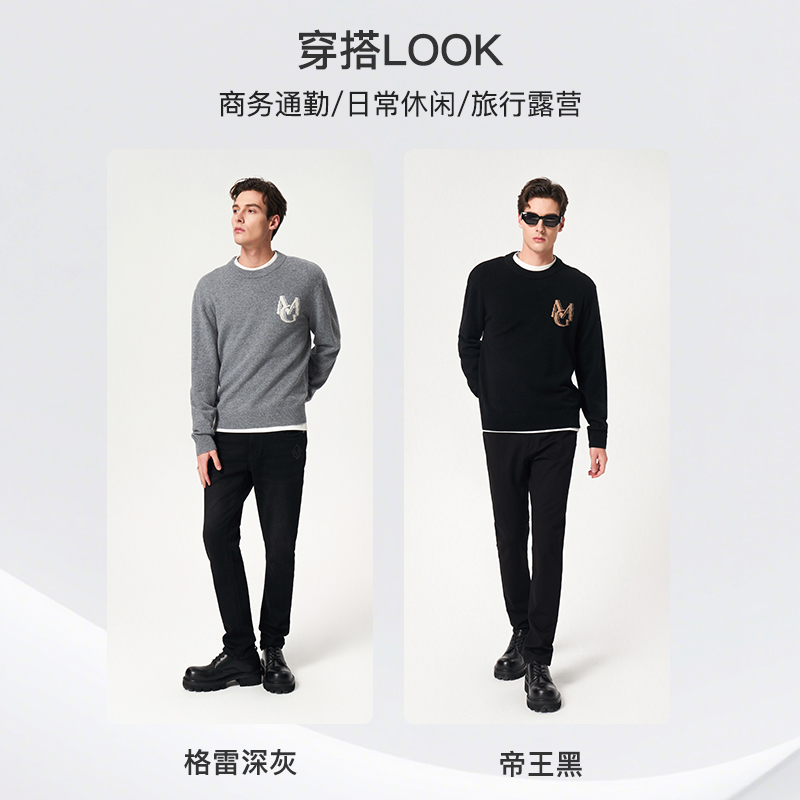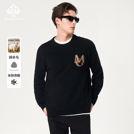 【100%绵羊毛】曼加龙2025秋冬新款黑色男士毛衣时尚休闲针织衫男