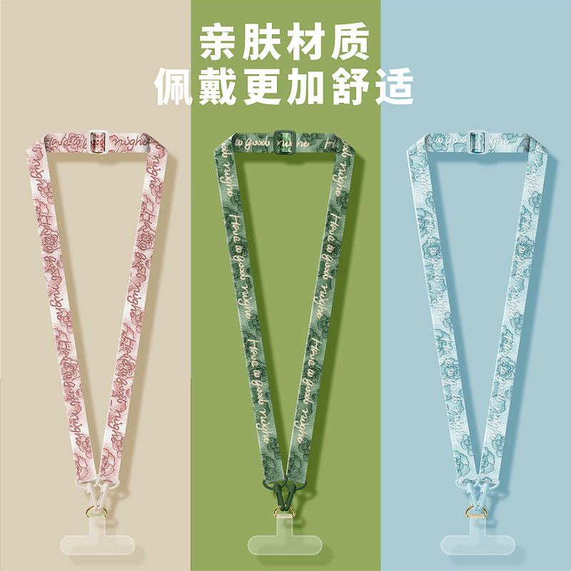 手机挂绳男女款高端网红可爱卡通花朵可背宽带子不勒脖挂坠长款斜挎可肩背挂脖子结实耐用防丢挂链带固定夹片