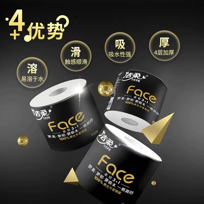 洁柔卷纸黑Face卷纸4层130克大卷家用纸巾卷筒纸整箱厕纸卫生纸