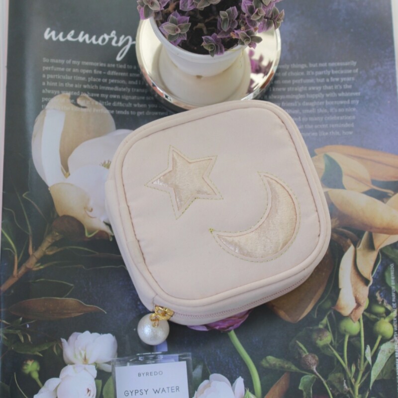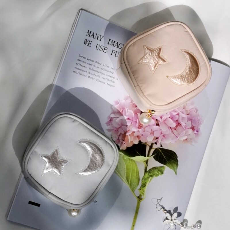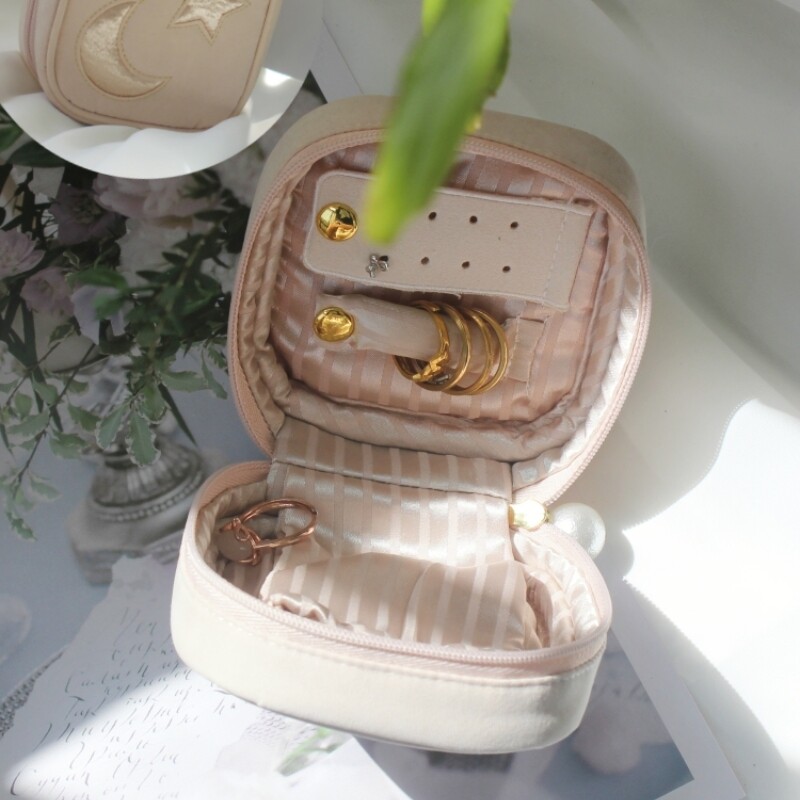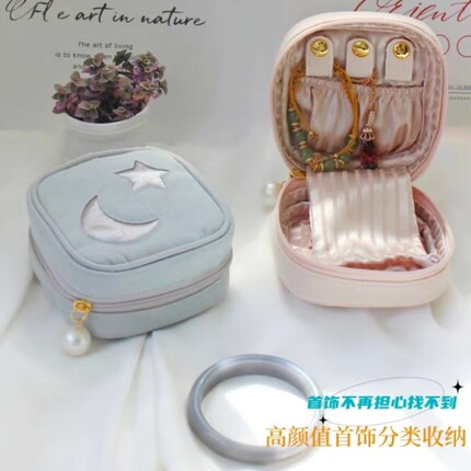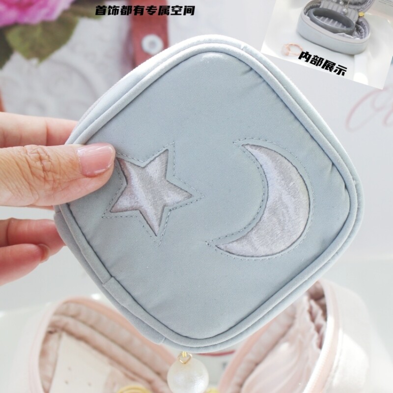 星月刺绣冰激凌精致珍珠方形便携首饰盒布艺收纳小首饰包耳钉戒指