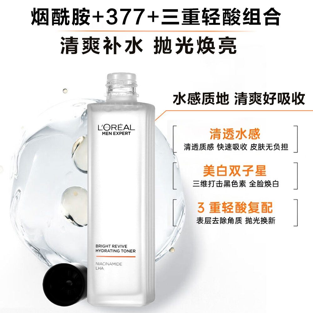 欧莱雅男士耀亮爽肤水亮白保湿水清爽补水保湿烟酰胺焕亮提亮肤色