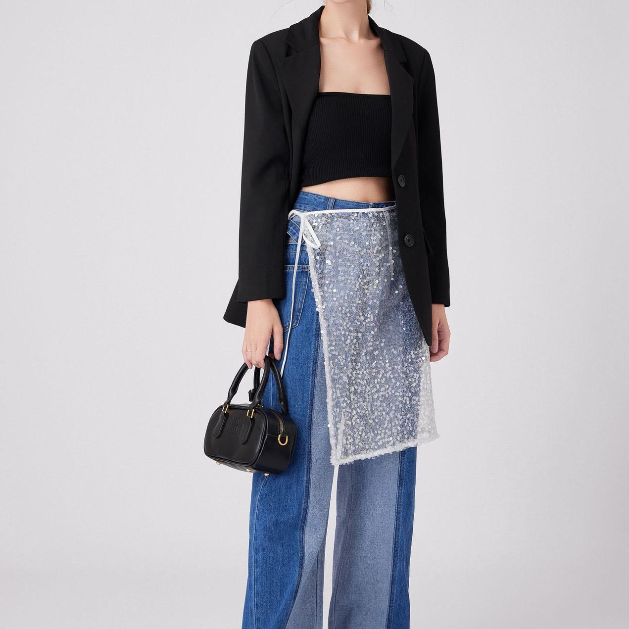 韩国花边蕾丝半身裙女碎花叠穿罩裙下摆遮臀屁帘网纱亮片围裙子潮